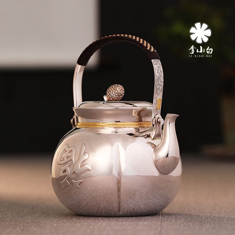 李小白银壶 纯银银壶 纯手工制作 纯银9999福袋银壶 纯银烧水壶